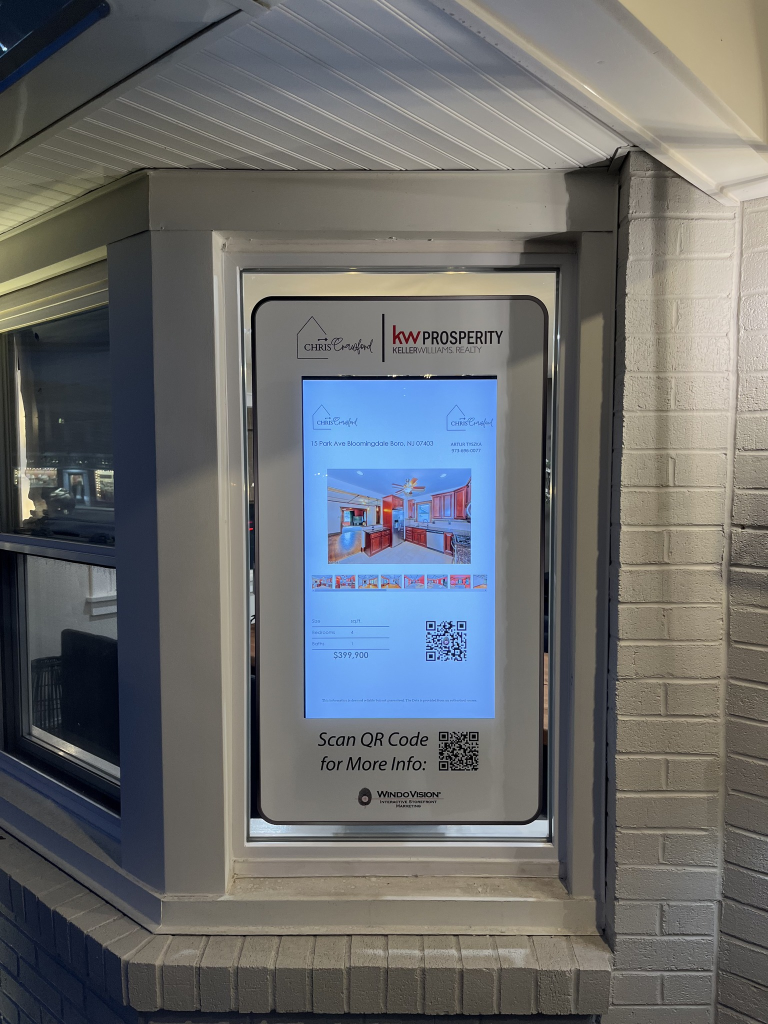 Try WindoVision QR! WindoVision QR syncs with your local MLS to produce a collection of listing slides for your listings and other listings for sale in your area. Each listing that appears on the screen automatically features basic listing information, agent information as well a custom QR code that passers by can scan and share from their smartphone 24 Hours a day! Many companies have tried to imitate the WindoVision model, but none has come close to providing the number of features or excellent customer service that TouchPoint Systems provides.
